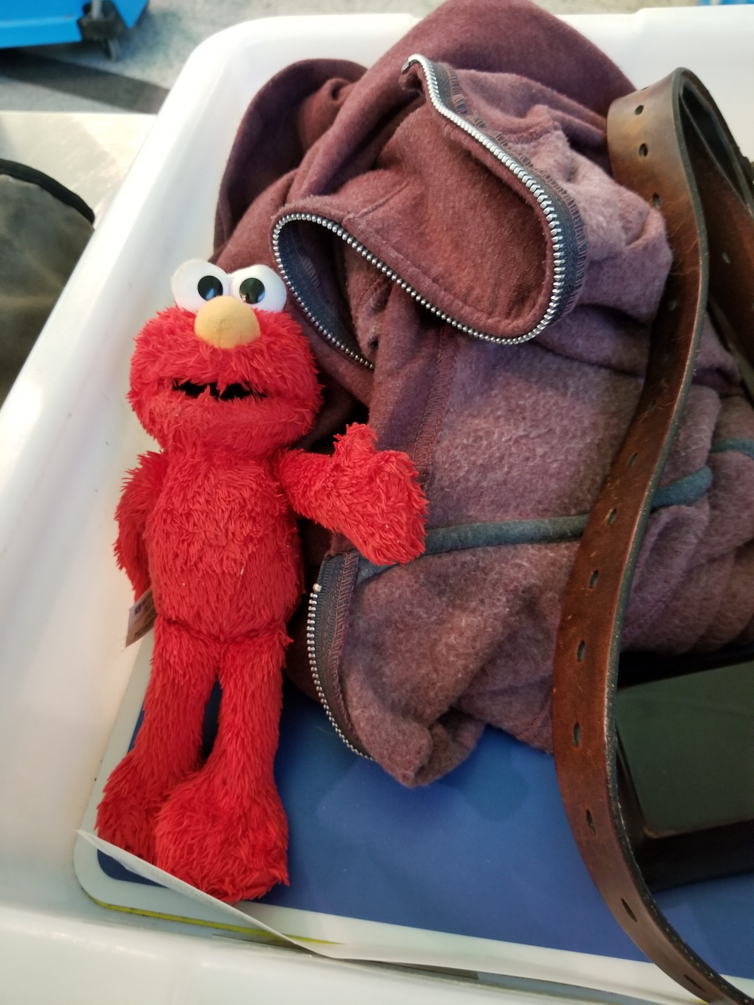 - Elmo goes through the TSA check