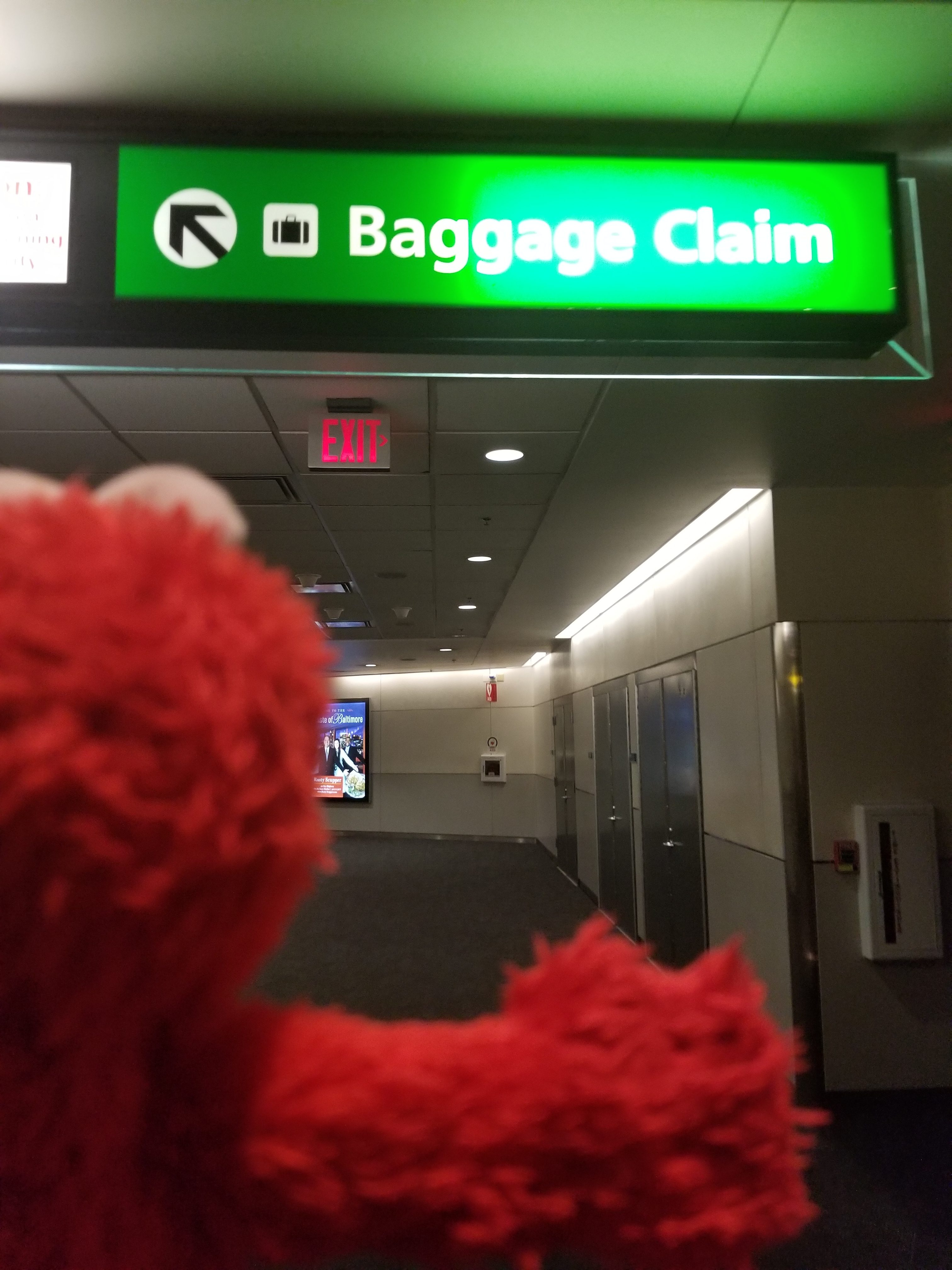 - Elmo needs to follow the signs to Baggage Claim!